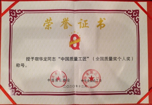兵器工业集团宿华龙荣获第十九届全国质量奖“中国质量工匠”称号 |